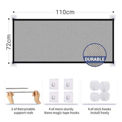 Cancelletto magico per cani, per interni ed esterni, cancello di sicurezza per animali domestici, per scale, recinzione in rete per cani, gatti (110 cm x 72 cm)