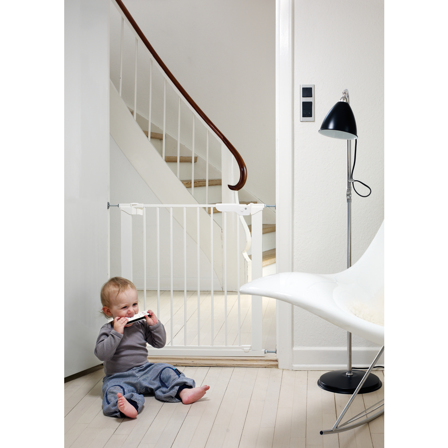 In metallo laccato Si fissa a pressione, non necessita di viti Indicatore di corretta installazione Segnala la corretta installazione del cancelletto Con estensioni fino a 119,3 cm In caso di più di 2 prolunghe si consiglia di fissare il cancelletto alle pareti con delle viti Caratteristiche del prodotto: tutto il necessario per il montaggio è nella scatola indicatore di corretta installazione Dettagli tecnici: Colore: Bianco Misure: 73,5 - 79,6 cm Misure con estensione: 79,6 - 86,5 cm Altezza: 71 cm Attenzione: Le prolunghe Baby Dan Extend-A-Gate sono disponibili separatamente.