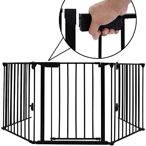 Cancelletto di Protezione per Camino in Acciaio Nero Recinzione Stufa (5 pezzi) 300x75,5x2,5 cm (Nero, 300x75,5x2,5 cm)