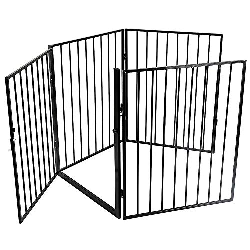 Cancelletto di Sicurezza Barriera Protettiva per Bambini, Camino, Cani, Animali, Stufa, Bambini Box Cani Grata Pieghevole- 5 elementi, 300 x 75 cm, Nero