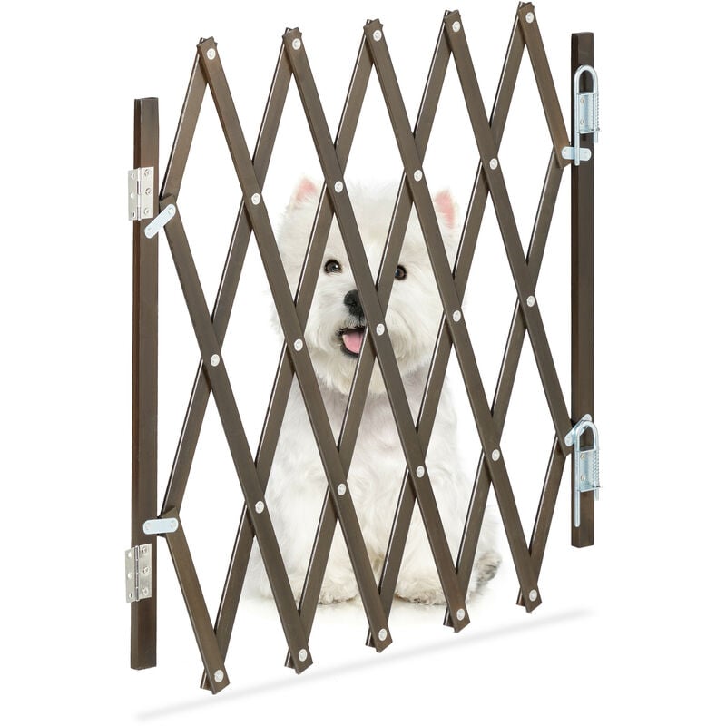 Questo cancelletto per cani allungabile è la soluzione ideale per proteggere il tuo amico a quattro zampe dalle scale e dalle possibili zone pericolose della casa. Per impedire l'accesso a determinati ambienti della tua abitazione, basta fissare la recinzione allo stipite della porta o alla parete con il materiale per il montaggio in dotazione. La barriera in bambù resistente è adatta per scale e porte sia strette sia larghe, dato che può essere regolata in larghezza in maniera flessibile. Cancelletto di sicurezza per cani - Altezza: 48,5 - 60 cm ca. - Larghezza: 17 - 96 cm ca. - Aste della recinzione L: 2 cm ca. - Misure spazio tra le aste H x L: 19 x 15 cm ca. - Peso: 0,9 kg ca. - Materiale: bambù, ferro - Colore: marrone Barriera allungabile protettiva per animali domestici - Chiudi determinate stanze o sbarra i passaggi sulle scale - Impedisci al tuo cane di accedere a zone pericolose della casa - Cancelletto allungabile in larghezza: si adatta ad ogni spazio - Con materiale