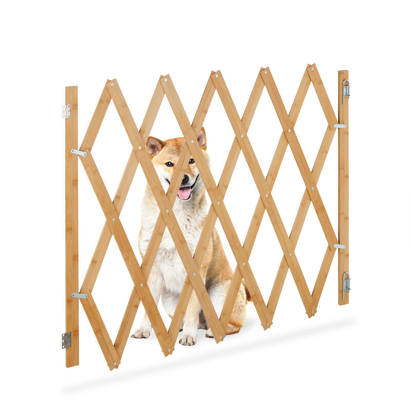 Questo cancelletto per cani allungabile è la soluzione ideale per proteggere il tuo amico a quattro zampe dalle scale e dalle possibili zone pericolose della casa. Per impedire l' accesso a determinati ambienti della tua abitazione, basta fissare la recinzione allo stipite della porta o alla parete con il materiale per il montaggio incluso. La barriera in bambù resistente è adatta per scale e porte sia strette sia larghe, dato che può essere regolata in larghezza in maniera flessibile. Cancelletto di sicurezza per cani in dettaglio - Altezza: 87 - 97 cm ca. - Larghezza: 34 - 140 cm ca. - Aste della recinzione L: 4 cm ca. - Misure spazio tra le aste H x L: 33,5 x 20,5 cm ca. - Peso: 2,7 kg ca. - Materiale: bambù, ferro - Colore: naturale Recinzione per proteggere il tuo amico a quattro zampe - Protegge il tuo cane dalle scale - Blocca l'accesso a stanze pericolose della casa - Cancelletto allungabile in larghezza - Con materiale per il montaggio incluso nel contenuto della confezione