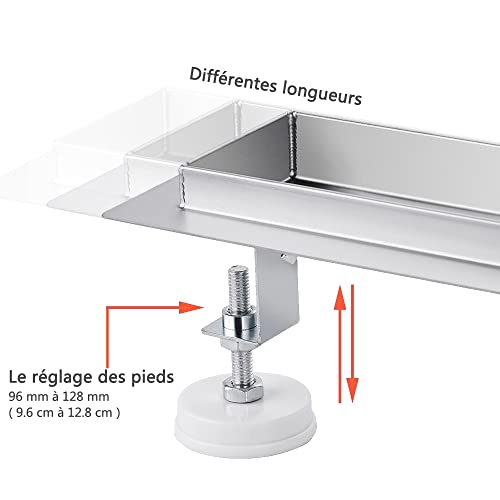 Installazione pratica e utilizzo flessibile: grazie all'altezza regolabile (altezza da 9,6 cm a 12,8 cm) e le diverse lunghezze (60 70 80 cm) proposte consentono di adattare la canalina per doccia italiana alle vostre esigenze