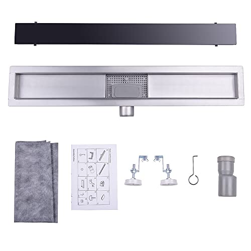 Cancello doccia piatto 60 cm, sifone con stop-odore e filtro per capelli canalina doccia in vetro nero set completo sifone pavimento in acciaio inox per box doccia parete doccia