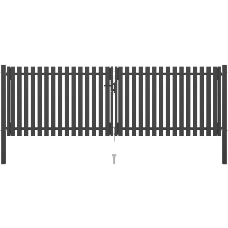 Il nostro cancello da giardino è un ingresso moderno, elegante e pratico per isolare il vostro giardino dal mondo esterno. Altamente stabile e durevole, il cancello per recinzione costituisce una pratica barriera di sicurezza per il vostro giardino, patio o terrazza. Grazie al suo telaio in tubo piatto rinforzato, il nostro cancello da giardino offre un alto grado di sicurezza, mentre forma un favoloso ingresso sulla vostra proprietà. Il centro include un perno di terra per un maggiore supporto. Il cancello è realizzato in acciaio resistente e verniciato a polvere contro ruggine e corrosione. Questo cancello di recinzione è dotato di un sistema di bloccaggio e è dotato di due pali solidi e robuste cerniere per una facile installazione. Colore: Antracite Materiale: Acciaio verniciato a polvere Dimensioni: 4 x 1,5 m (L x A) Dimensioni del pannello: 4 x 1 m (L x A) Dimensioni palo: 8 x 8 cm (L x P) Altezza del palo: 1,5 m Tubi piatti Bloccabile 2 montanti con robuste cerniere Al centro