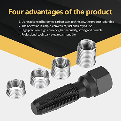 Candela Accensione, 5 Pezzi Candela in Acciaio al Carbonio Utensili per Filettare Re-Filettatura Kit con Inserti per Candele Scintilla da 14 mm