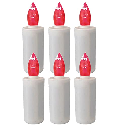 CANDELA FIAMMA Lumino Votivo funebre a LED, effetto fiamma Rossa, luce di cimitero INTERMITTENTE incluse batterie stilo 10xØ30 mm (6, Bianco)