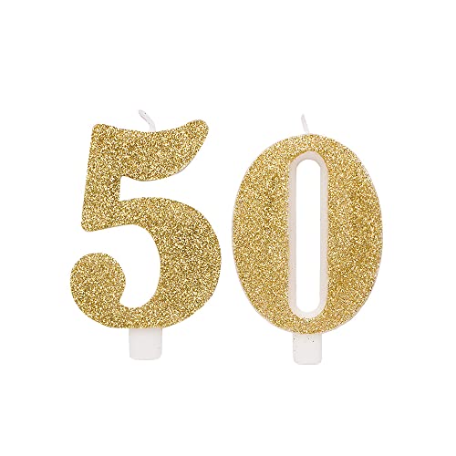 Candela 50 ORO GOLD GLITTER numerale h 9,5cm - 50 Anni - Candelina oro per Torta e dolci - candela di compleanno in cera a forma di numero