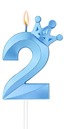 8cm Candela Numero Compleanno, 3D Numeri Candele Candele Numeri Grandi per Torte di Compleanno con Decorazione Corona Cake Topper per Anniversario di Matrimonio San Valentino (Blu, Numero 2)