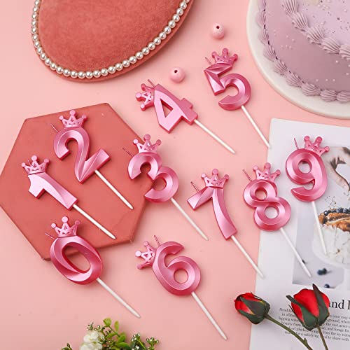8cm Candela Numero Compleanno, 3D Numeri Candele Candele Numeri Grandi per Torte di Compleanno con Decorazione Corona Cake Topper per Matrimonio Valentino Anniversario Festa (Rosa, 9)