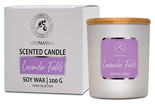 Candela Profumata Campi di Lavanda - Candele Soia per Aromaterapia - Candela Alla Cera di Soia con Oli Essenziali - Durata Fino a 45 Ore - Candela Regalo con Profumo per Casa