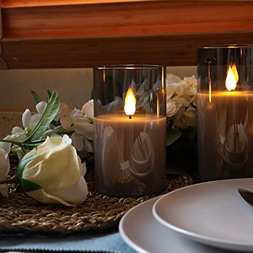 Candela in vetro grigio a batteria con timer da 6 ore, senza fiamma, set regalo con candela LED bianca calda, batterie incluse - set di 3