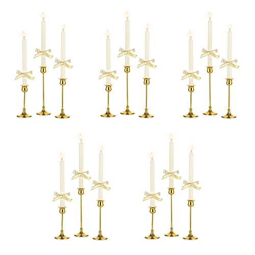 Candelabro Oro per Candelabri Portacandele da Tavolo - Inweder Set di 15 Porta Candele a Forma di Tulipano per Regali di Natale Candele Oro in Metallo Centrotavola Matrimonio Camino Decorazione Casa