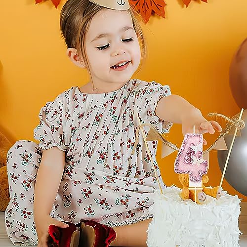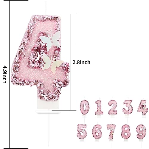 Candele Compleanno 4 Anno,3D a Farfalla Candele, Numero 4 Candele di Compleanno Rosa Candele Torta Decorazione, Adatto A Feste di Compleanno Festa Baby