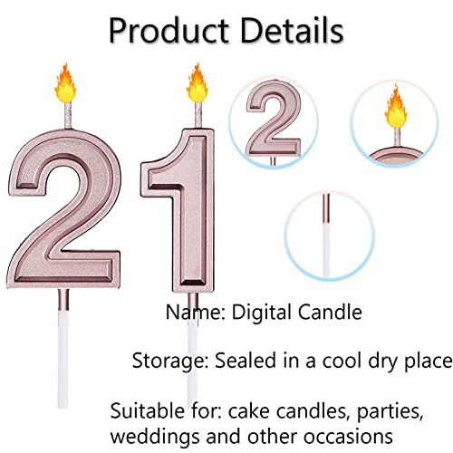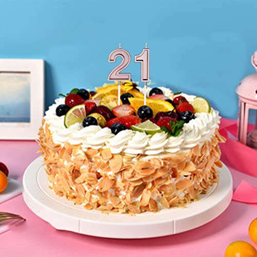 Candele di Compleanno 21 ° Numero, Cake Topper, Adatto A Feste di Compleanno, Feste di Anniversario di Matrimonio, Serate di Laurea (Oro Rosa)
