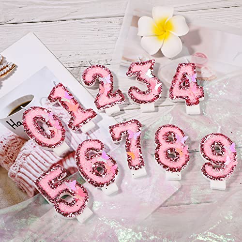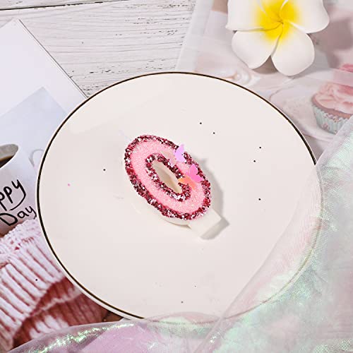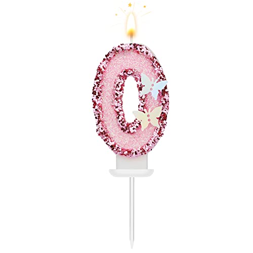 8 X 5 cm Candele di Compleanno Numero, Candele Numeri Torta Rosa Glitterato Cake Topper Candele di Compleanno a Farfalla con Paillettes per Forniture per Feste di Anniversario (Numero 0)