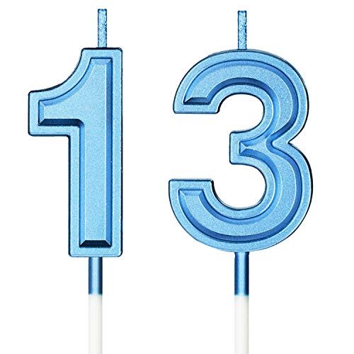 Candele di Compleanno 13 ° Numero Candele Torta di Buon Compleanno Topper Decorazione per Compleanno Nozze Anniversario Celebrazione Articoli (Blu)