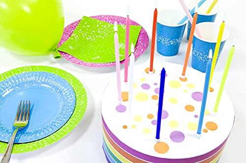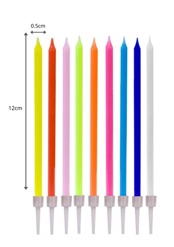 16 Candele di Compleanno Lungo Sottile con Supporti - Dimensioni 12 cm x 0,5 cm - Colore Rosa