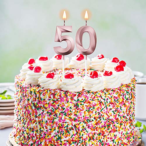 Candele di Compleanno 50 ° Torta Numero Candele Decorazione di Topper Torta Buon Compleanno per Festa Nozze Compleanno Anniversario Celebrazione Forniture (Oro Rosa)