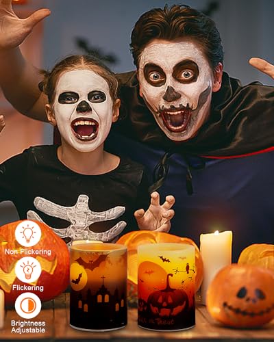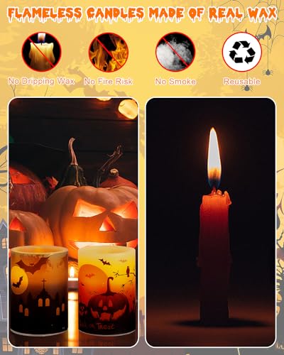 DECORAZIONE DI HALLOWEEN - Le candela halloween tremolanti possono aiutarti a decorare la tua stanza per Halloween. È una buona scelta per la festa di Halloween e adatta come set regalo di Halloween per i tuoi amici. Quando le candele sono accese, le lampadine a LED emettono una luce gialla tremolante, creando un'atmosfera spettrale di Halloween.