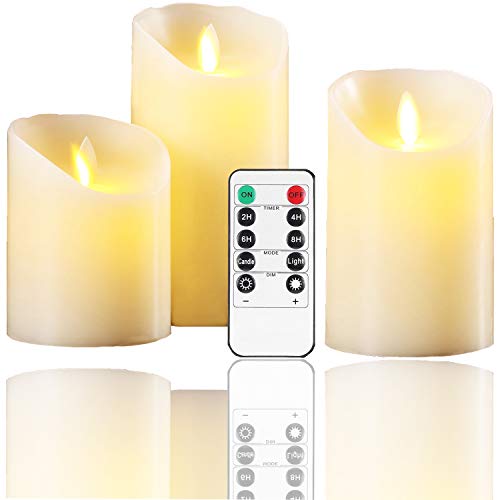 Candele LED Kambo Senza Fiamma in 3 Pezzi Cera da 4”5”6” con Telecomando a 10 Tasti Funzione Timer Luce Decorativa Classiche Candele Cilindriche in Vera Candele Senza Fiamma da 300 ore