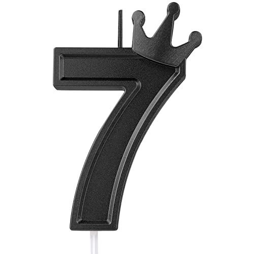 7,6cm Candele Numeri Torta, Candele di Compleanno Numero con Corona Nero Candela Principessa Candele a Forma di Numero per Compleanno Anniversario Feste (Numero 7)