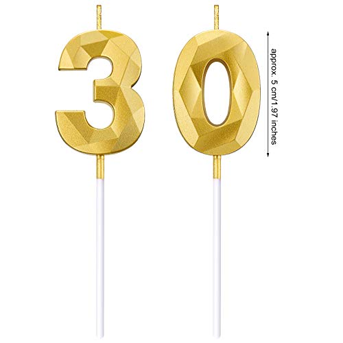 Candele di Numero per 30 ° Compleanno Candele di Torta a Forma di Diamante 3D Topper di Torta di Numero 30 Decorazione per Articoli di Compleanno Nozze Anniversario Celebrazione, Oro
