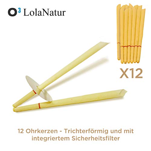 Candele per orecchie, 12 candele coniche e tradizionali in cera d'api, con 6 tappi salvagoccia, con filtro di sicurezza e istruzioni in lingua tedesca (lingua italiana non garantita)