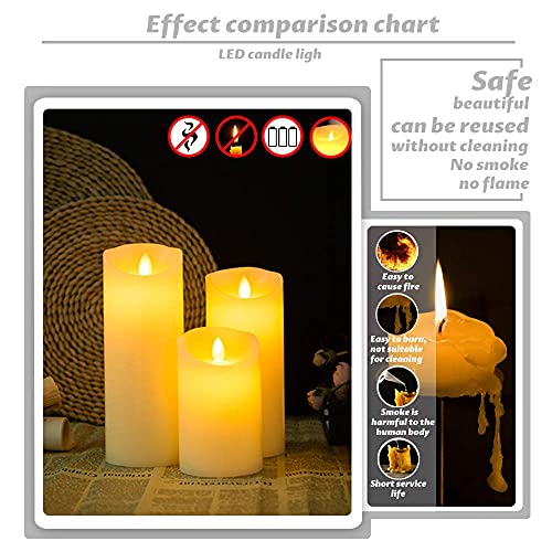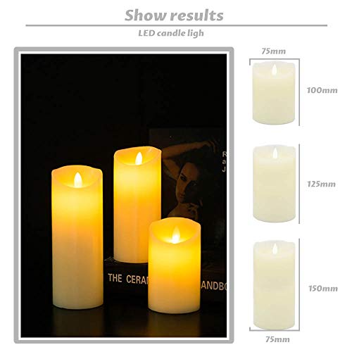 Set di 3 candele a LED, candele senza fiamma Candele elettriche, batteria Candele decorative Luci da tè senza fiamma con funzione timer telecomando (dimensioni: 7,5 cm x H 10/12,5/15 cm)