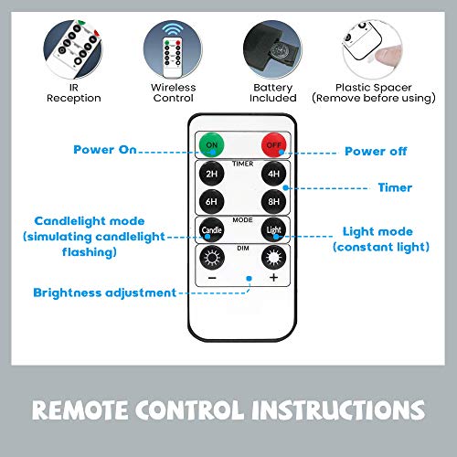 Modalità timer: puoi controllare tutte e 3 le candele con un telecomando. Dopo aver impostato il timer, accendi le candele ogni giorno per 2 ore / 4 ore / 6 ore / 8 ore contemporaneamente.