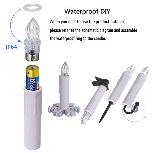 Tutto in un set: set di candele a LED incluse nella confezione batterie AA per ogni candela a LED e due batterie AAA per il telecomando, nonché set di fissaggio di morsetti, supporto a ventosa e mandrini, non è necessario acquistare altro per utilizzare il prodotto.