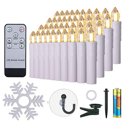 40 candele a LED con 40 supporti a batteria, telecomando, timer, dimmerabile, bianco caldo, IP64, impermeabile, per Natale, compleanni, chiesa, bianco
