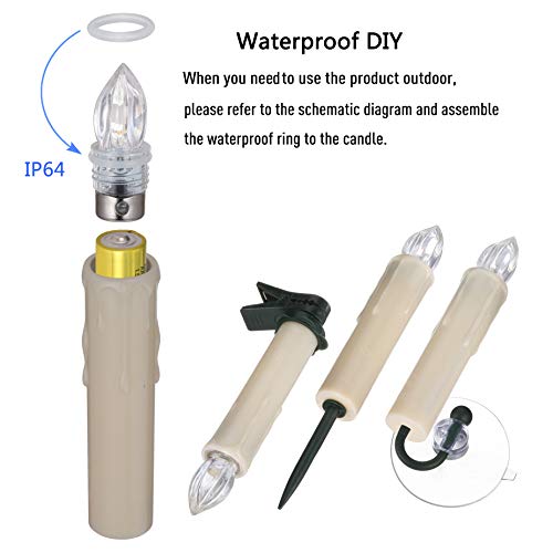 Tutto in un set: set di candele a LED incluse nella confezione batterie AA per ogni candela LED e due batterie AAA per il telecomando, nonché set di fissaggio di morsetti, supporti a ventosa, spina, basi di neve e anello di tenuta impermeabile, non è necessario acquistare altri articoli per utilizzare il prodotto e potete utilizzare le candele in diversi luoghi. Ogni candela ha 1 morsetto, 1 mandrino e 1 anello impermeabile, e ogni candela ha 3 ventose e 2 basi di neve.