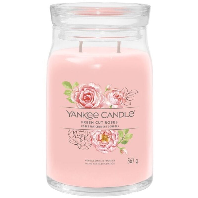 Yankee Candle Candela Grande Fresh Cut Roses, è una fragranza Fiorita. Un inebriante giardino inglese che evoca il profumo di rose tradizionali. Note di testa: Buccia di mela fruttata, Foglia verde, Agrumi Note di cuore: Rosa rossa, Geranio Note di fondo: Note talcate, Muschio Le note di testa sono le note profumate che si percepiscono al primo impatto, le note di cuore costituiscono la struttura principale della fragranza, mentre le note di fondo ne costituiscono la struttura finale. Tempo di combustione: 60 a 90 ore Cera: Miscela di cera di soia liscia che garantisce una combustione pulita e costante. Profumazione: Ingredienti di alta qualità che producono fragranze autentiche ed esclusive Stoppino: In fibre naturali al 100%, rigorosamente testato per garantire una combustione ottimale. Peso: 567g Dimensioni: 9.3cm x 15.7cm Questo rinfrescante ritocco dell'iconico design a giara è progettato per creare la miglior esperienza ad oggi. Questa è la più grande candela nella gamma dal