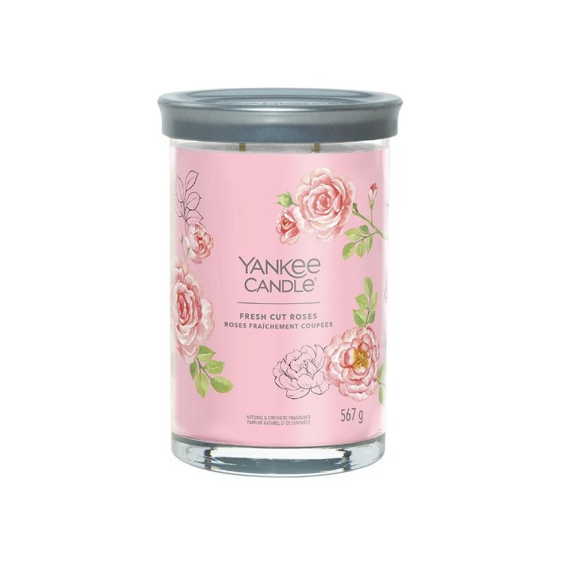 Il Tumbler Grande Fresh Cut Roses della Linea Signature di Yankee Candle richiama il profumo della rosa. La sua Fragranza Fiorita ti farà vivere la sensazione di una passeggiata in un giardino inglese dall'intenso aroma di rose tradizionali. La candela è prodotta con cera di soia di alta qualità che garantisce un aroma forte e duraturo: il bicchiere di vetro con 2 stoppini dentro cui è riposta preserva e contiene la fragranza. Gli stoppini sono realizzati con fibre naturali al 100%, rigorosamente testati per garantire una combustione ottimale. Il formato Tumbler Grande offre una lunga durata: da 60 a 100 ore di piacevole profumazione. Maggiori informazioni Yankee Candle Signature Candela in Tumbler Grande Fresh Cut Roses 100 Ore: Codice prodotto: 1630709E Formato: Grande Peso: 567 g Dimensioni: 9,9 x 14,9 cm Durata: da 60 a 100 ore Coperchio di latta satinato che si adatta alla base diventando un sottocandela Profumazione: Fresh Cut Roses Note di Testa: Buccia di mela fruttata, Foglia