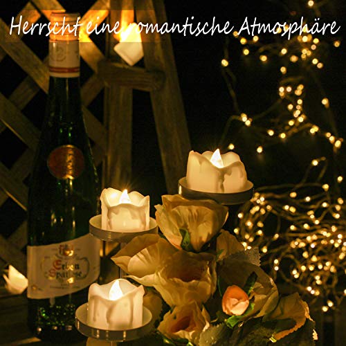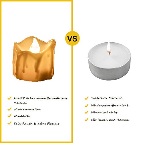 24 candele LED belle e romantiche, non profumate, senza fiamma, luce tremolante, dimensioni: 3,55 cm (diametro) x altezza 3,3 cm.-Tremolio come una vera fiamma, le luci LED non si scaldano e durano fino a 10.000 ore.