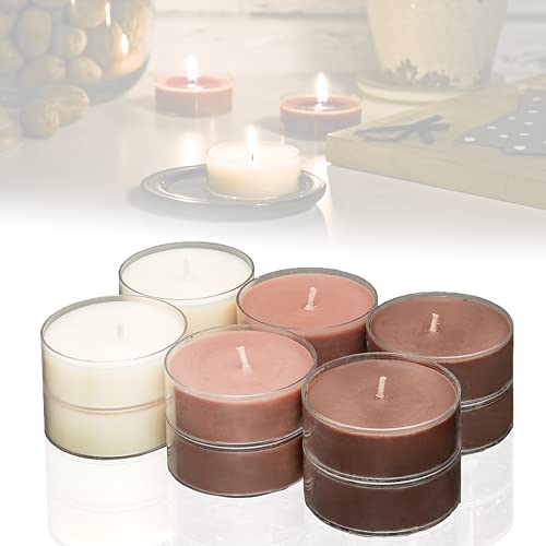 Candelo Set di 12 candele profumate XXL - Candele profumate alla vaniglia - Jumbo lumini in custodia di plastica - 8 ore di durata - Candele grandi in 3 colori