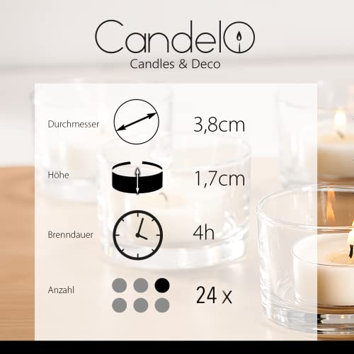 Candelo Set di 24 luci profumate - candele profumate a forma di fiori, giglio, in custodia in plastica, 3,8 x 1,7 cm, durata 4 ore, odore di fiori
