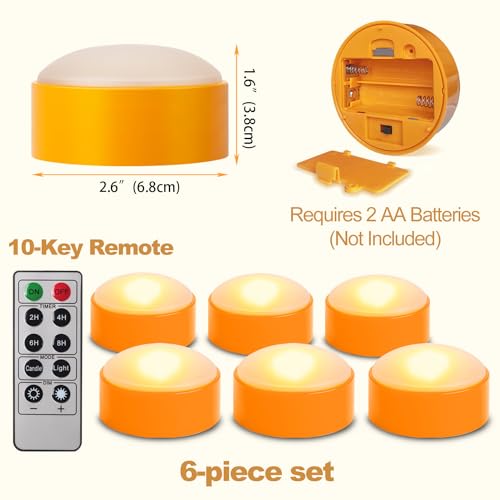 CANDLE IDEA 6 luci a LED di zucca di Halloween con telecomando e timer, a batteria arancione Jack-O, per decorazioni di Halloween, candele senza fiamma per decorazione di zucca