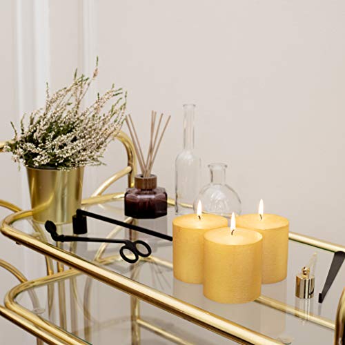 CANDWAX, Set di 3 candele decorative rustiche non profumate e senza gocciolamento, ideali come candele nuziali o grandi candele per interni di casa, 3 x 3 inch, candele oro