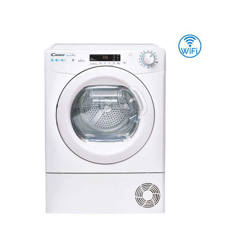 Candy Asciugatrice Smart WIFI 10 Kg - CREH10A2DE-S - Dimensioni: 850 x 607 x 585 Smart Candy crede nell'importanza del godersi la vita, questo è il motivo per cui la nuova gamma di asciugabiancheria è stata realizzata, per asciugare i tuoi indumenti facilmente e in maniera smart, semplificandoti la giornata. In questo modo puoi avere più tempo per te e per ciò che ami di più. Lascia che Candy ti aiuti quotidianamente: i risultati saranno fantastici. Comfort e facilità d'uso: mai più sforzi eccessivi e perdite di tempo, energia e denaro. Approfitta dei benefici forniti dall'altezza dell'oblò: non dovrai più stressare la tua schiena per caricare il bucato. Le asciugabiancheria Candy Smart sono anche elettrodomestici connessi: ottieni benefici dalla connettività NFC che ti aiuta a migliorare la tua esperienza di asciugatura, semplicemente e direttamente dal tuo smartphone. Risparmia tempo ed energia Quante volte vorresti far partire due elettrodomestici contemporaneamente, ma la
