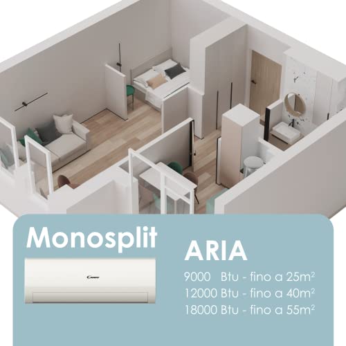 Candy, Condizionatore Smart Linea Aria, Climatizzatore Monosplit con Unità Esterna e Interna 12000 Btu, 20 dBA, con Pompa di Calore e Deumidificatore Steri-Clean 56° e Self-Clean