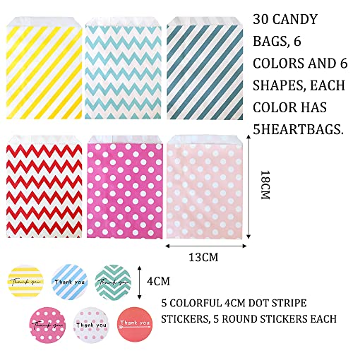 【Dimensioni della confezione】: la confezione contiene 35 articoli in totale, 30 sacchetti di caramelle, 5 adesivi con sigilli rotondi, 30 sacchetti di caramelle, 7 sacchetti di colori diversi e 5 sacchetti interstrato per ogni colore. La confezione contiene 5 diversi stili di sacchetti di carta per caramelle, la dimensione del sacchetto di carta è di circa 13 x 18 cm, di medie dimensioni, adatta a diversi oggetti.