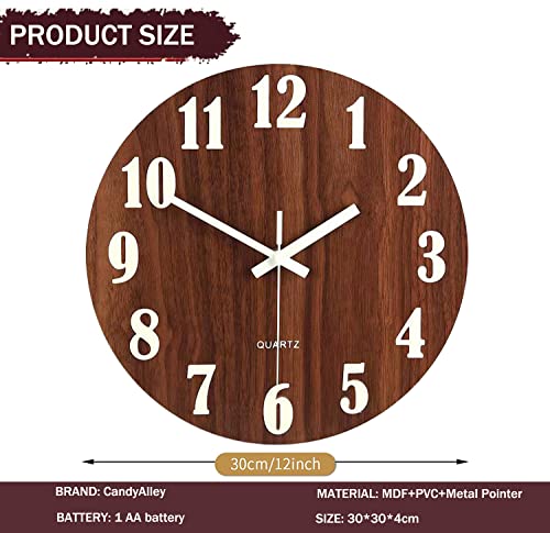CandyAlley Orologio da Parete in Legno, Orologio da Parete Moderno Grande Silenzioso Preciso, Orologio da Muro Digitale, Vintage, con Luci Notturne, Adatto per Soggiorno e Camera da Letto, 30cm, 12‘'