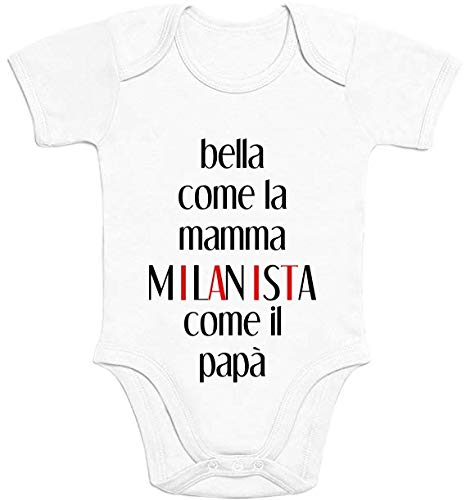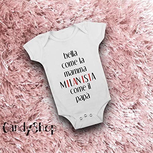 Candyshop Body Neonato - Bella Come la Mamma Milanista Come Il papà - Regali teneri Carini per Bimba Appena Nata - Body Neonato Manica Corta (0-3 Mesi)