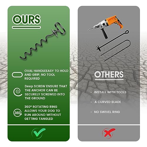 【Installazione facile】 L'ancoraggio a terra del cane può essere installato in un minuto grazie al nostro design di ancoraggio migliore della categoria. Il design della maniglia rettangolare consente di risparmiare fatica.