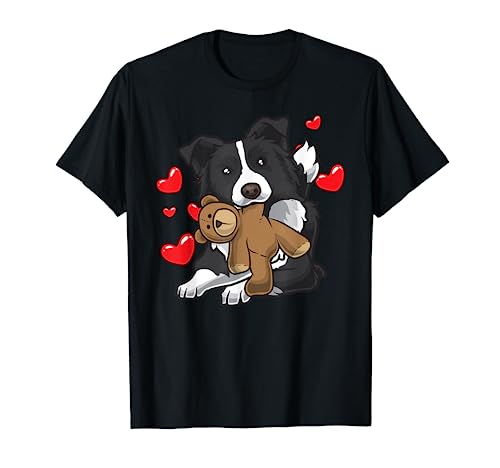 Cane Border Collie Con Peluche E Tanti Cuori Maglietta