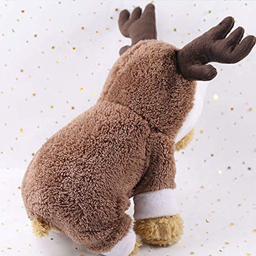Cane Carino Vestiti Natalizi Felpa Con Cappuccio Inverno Caldo Renna Cervo Alce Abbigliamento Per Animali Cappotto In Pile Di Corallo Per Cani E Gatti Cucciolo Vestito Natal(Color:Marrone,Size:medio)