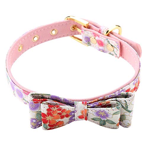 PU cane gatto bellissimo collare regolabile bowknot floreale collo anello per cane gatto decorative cucciolo piccoli animali(L-rosa)