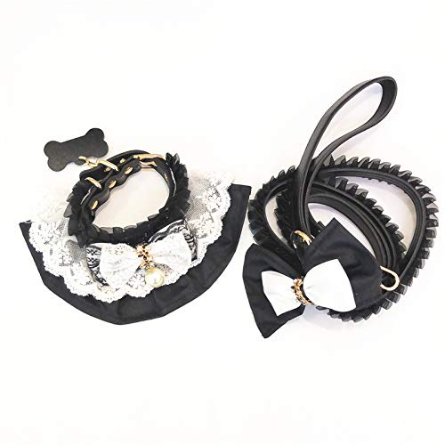 Da.Wa Cane Gatto Guinzaglio per Animali Domestici Pizzo Fascia Abbigliamento da Cameriera Vestiti per Cani Gatti Regolabile Retro Collare Animali da Compagnia Forniture Nero 1 Pezzo
